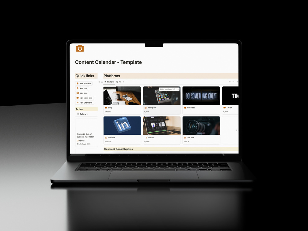 - Multi-platform content calendar with automatic status tracking